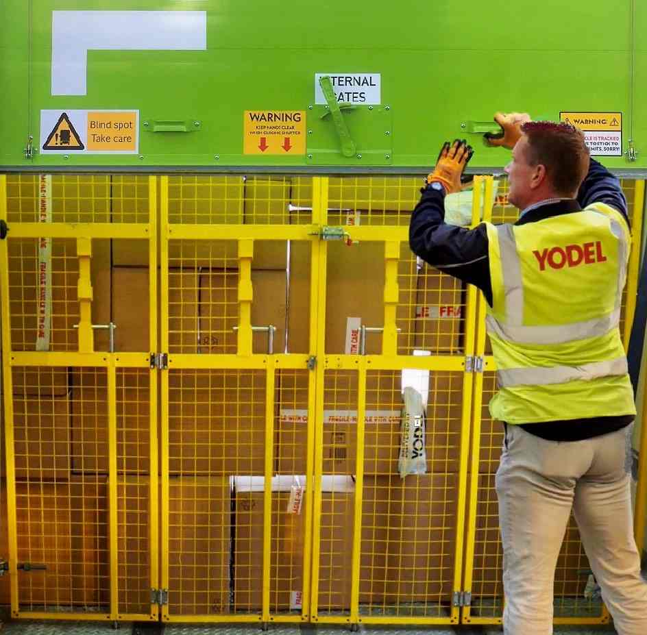 The custom-engineered safety feature has been designed to protect operatives from falling items when trailers are opened. Yodel and Cartwright created the system of two bifold mesh gates which can be opened individually, replacing the standard fabric net.