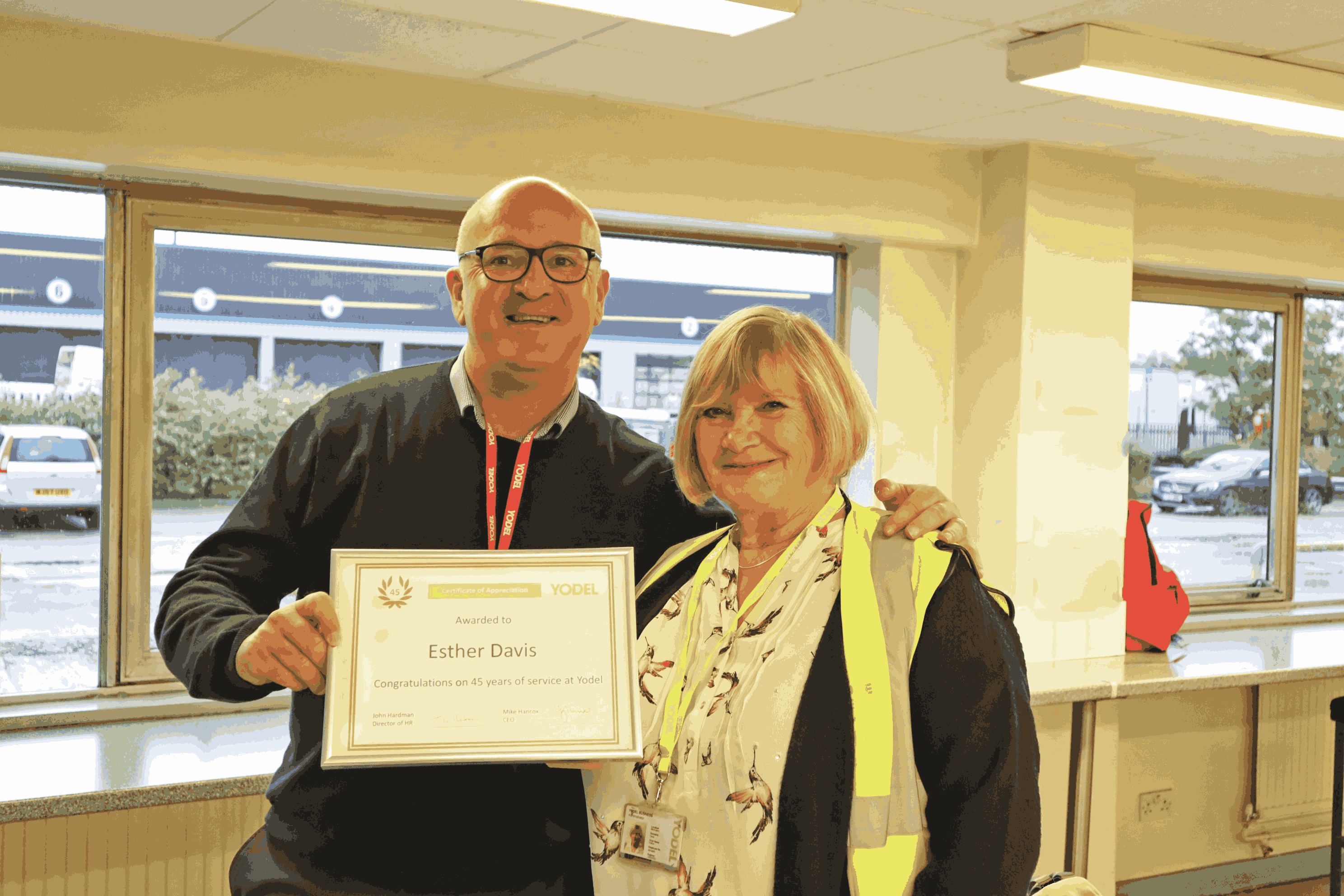 Esther Davis, customer contact support at Yodel commented: “It seems just yesterday that I joined Yodel – 45 years have flown by! I have enjoyed my experience with the company and, although I am 74 years old, I hope to do a few more years as I am not ready to retire just yet.”