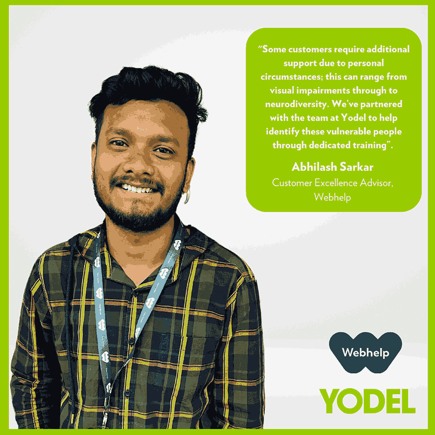 Abhilash, Customer Excellence Advisor at Webhelp, commented “Some customers require additional support due to personal circumstances; this can range from visual impairments through to neurodiversity. We’ve partnered with the team at Yodel to help identify these vulnerable people through dedicated training”.